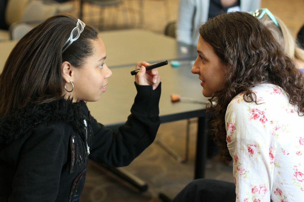 We also learned that certain medical scans can be really helpful in telling doctors if there are infections, tumors, strokes or other damage to parts of the brain. Here, Medical Scholar Renee uses Medical Scholar Tim as a model to show the different views that MRI (magnetic resonance imaging) scans can give doctors of what’s going on inside our brains: