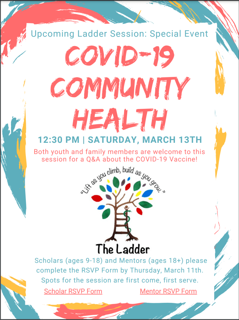 We meet every second Saturday of the month. Our next session will be taking place on March 13th at 12:30-2:00pm via zoom! This is a special session which will enable parents and scholars to discuss COVID-19 vaccinations with healthcare professionals.